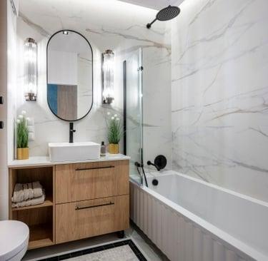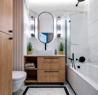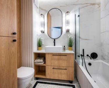 Redesign of your bathroom layout to improve flow, functionality, and aesthetics based on your lifestyle and space.