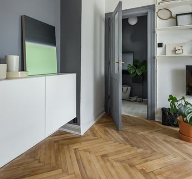 Flooring is carefully planned to enhance room flow, visual continuity, and everyday comfort. Materials and layouts are selected to create smooth transitions between spaces, improving functionality while elevating the overall interior design.